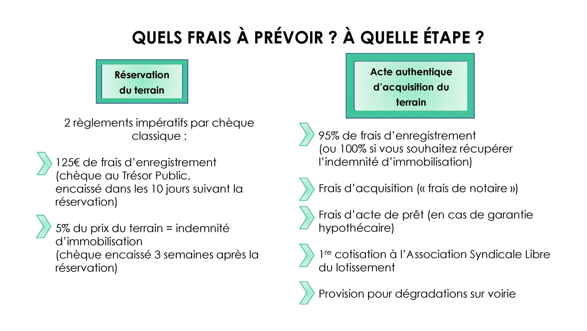 - 5% du prix du terrain encaissables sous 3 semaines et séquestré chez le notaire.