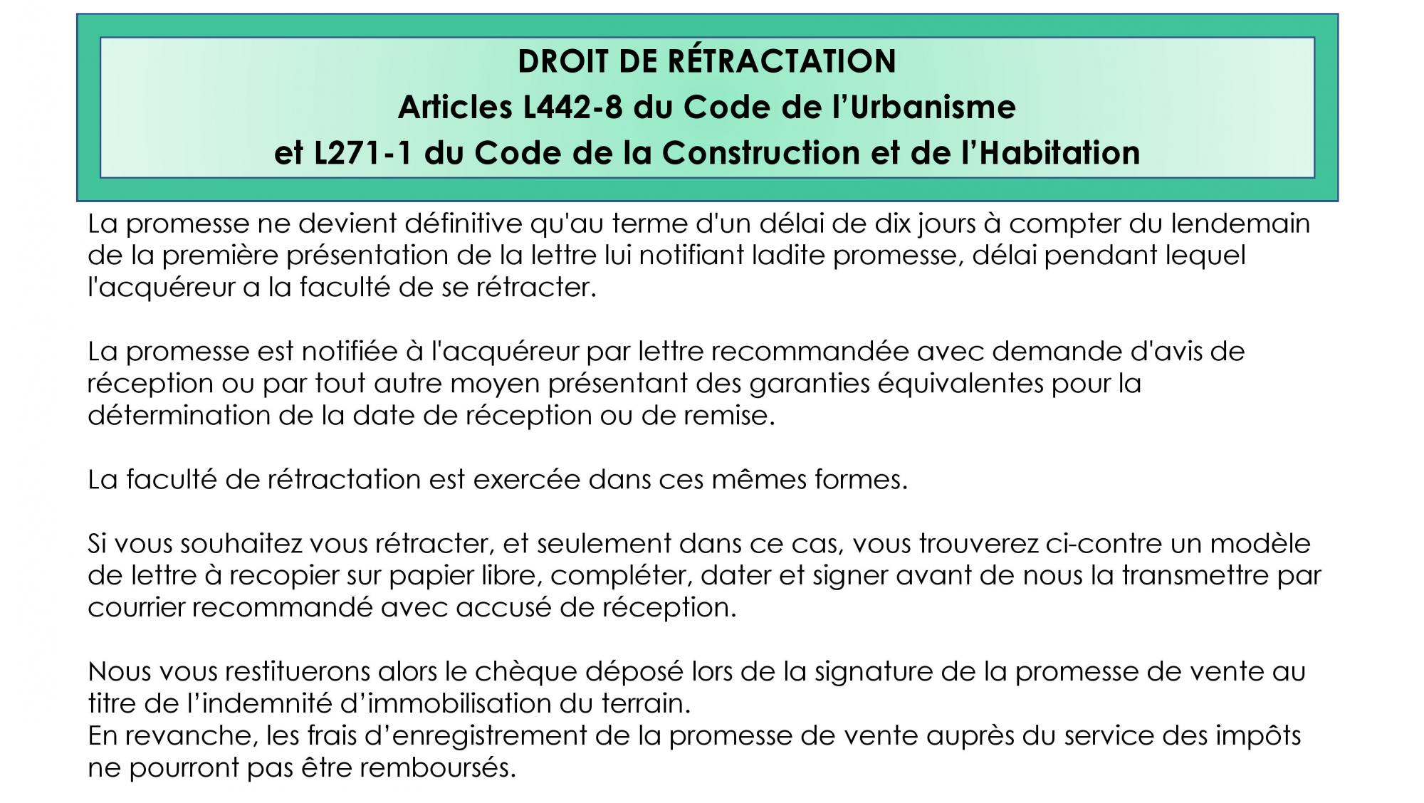 Je/Nous (*) soussigné(e)(s) vous notifie/notifions (*) par la présente ma/notre (*) rétractation de la promesse unilatérale de vente signée le