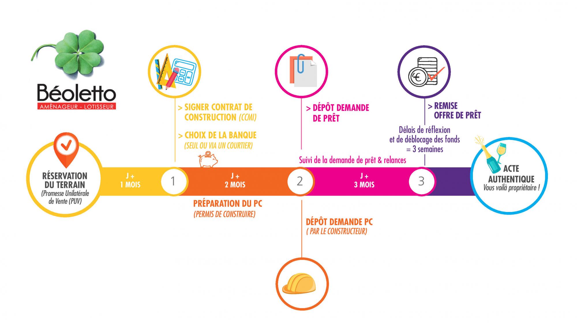4. J+4 mois = Signature de l'acte chez le notaire = vous devenez propriétaires du terrain